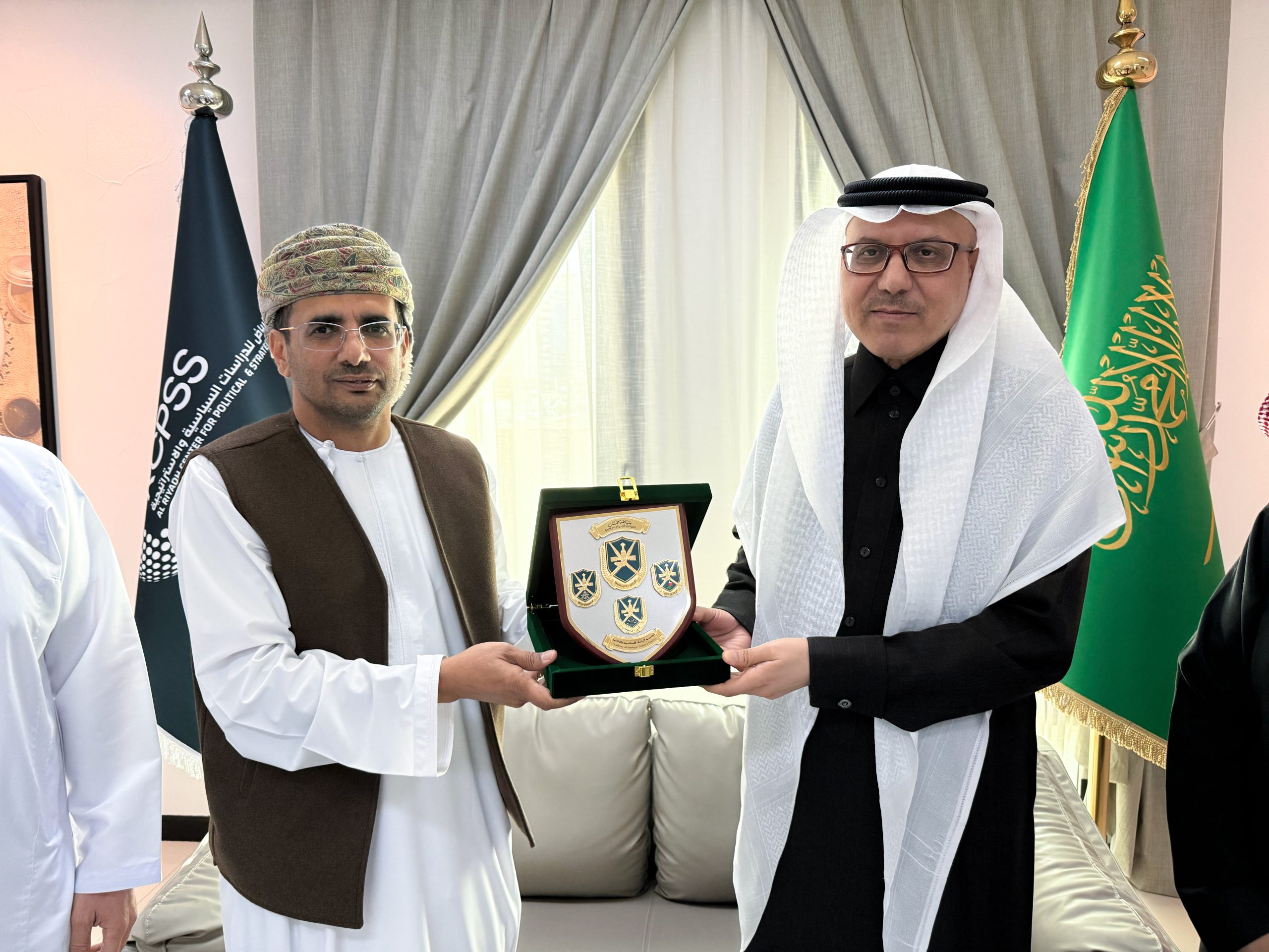 استقبل مركز الرياض للدراسات السياسية والاستراتيجية، وفداً رسمياً من أكاديمية الدراسات الاستراتيجية والدفاعية بسلطنة عُمان الشقيقة، وذلك في إطار تعزيز التعاون العلمي والبحثي وتبادل الخبرات مع المراكز البحثية النظيرة في المنطقة.